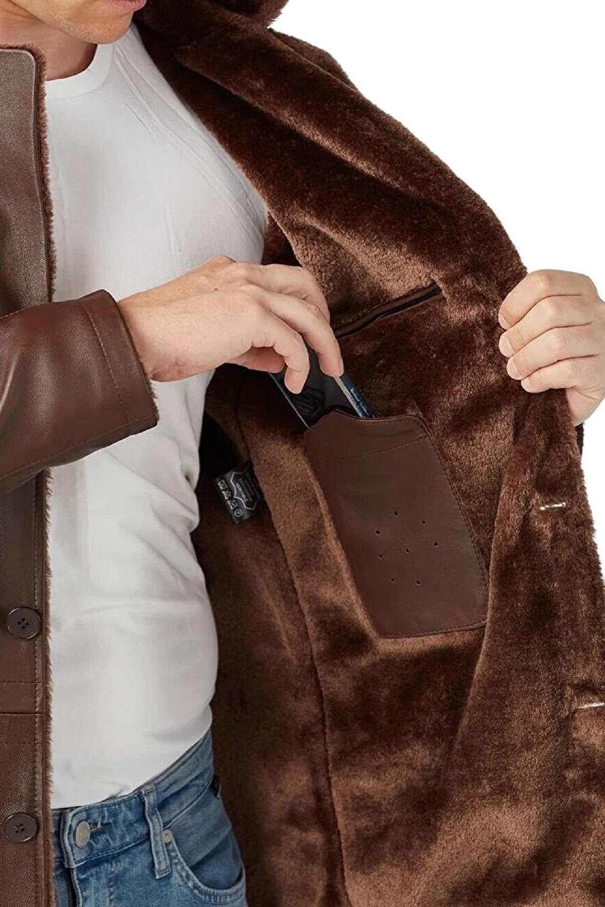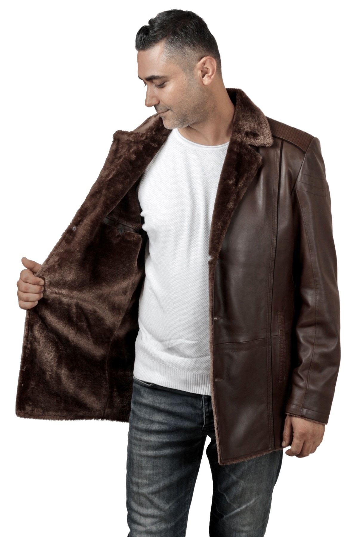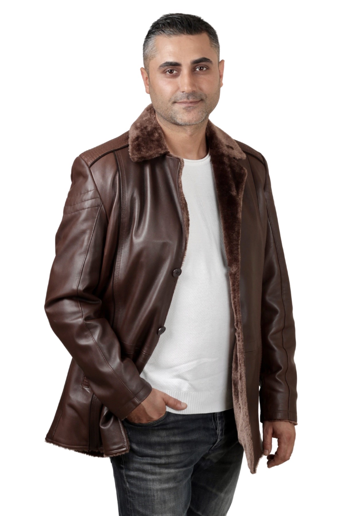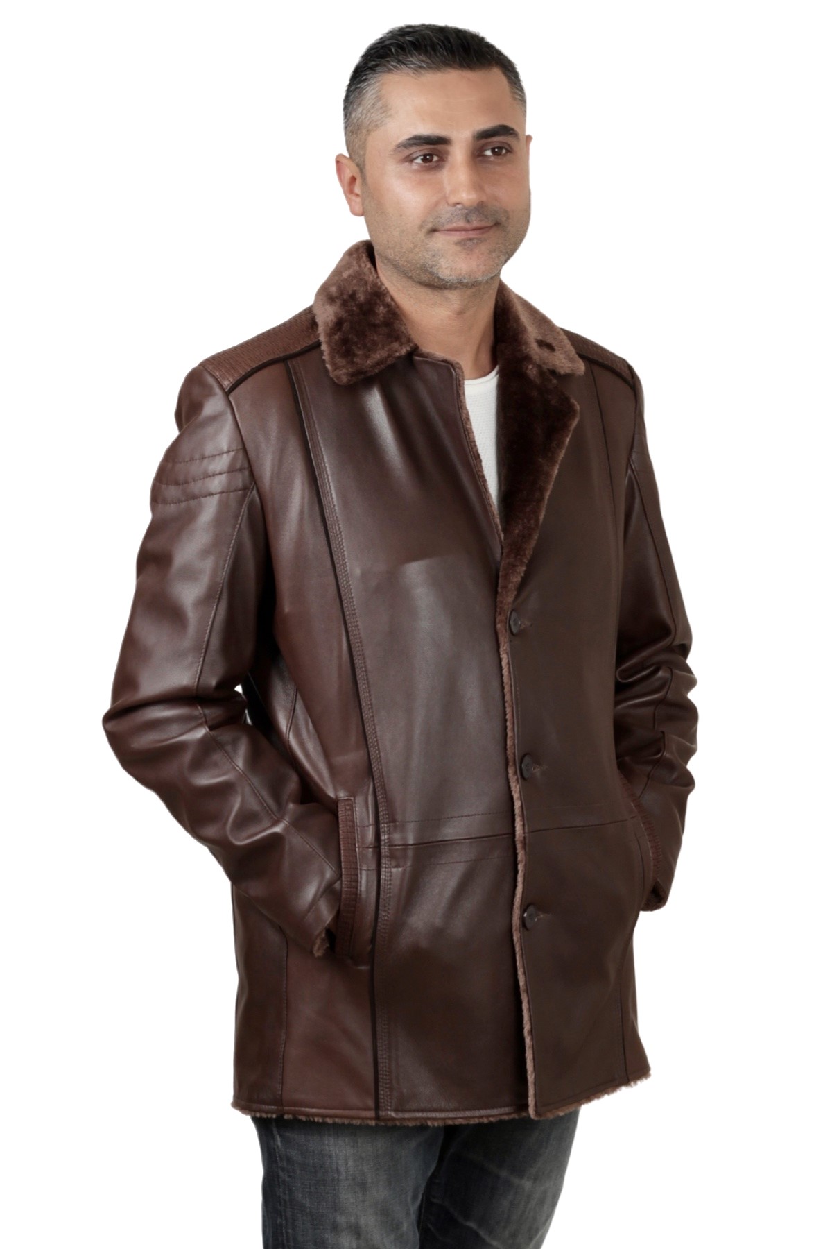 Kestane Karartma Hakiki Deri Kürklü Kaban -Stilinden Ödün Vermeyenler İçin