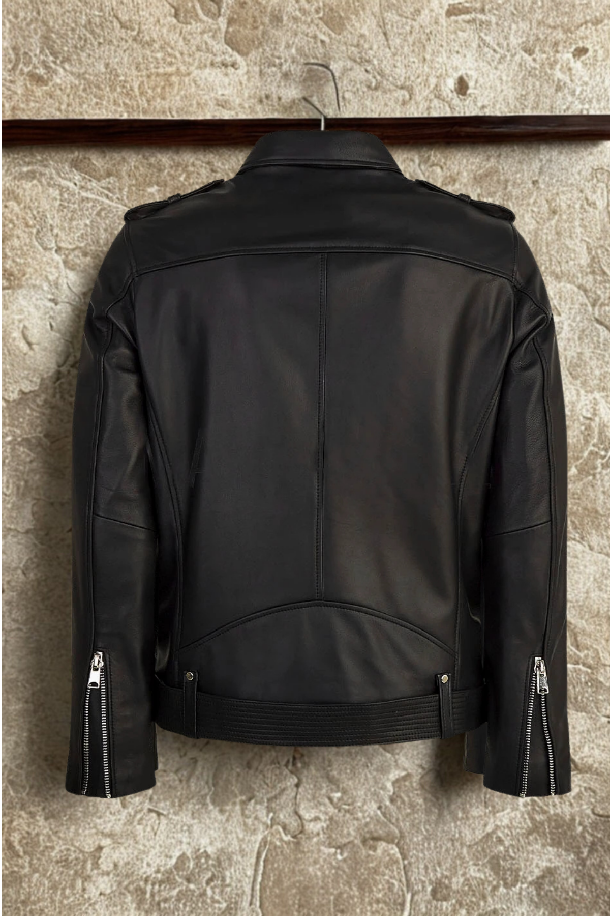 Derije Erkek Siyah Hakiki Deri Motorcu Montu