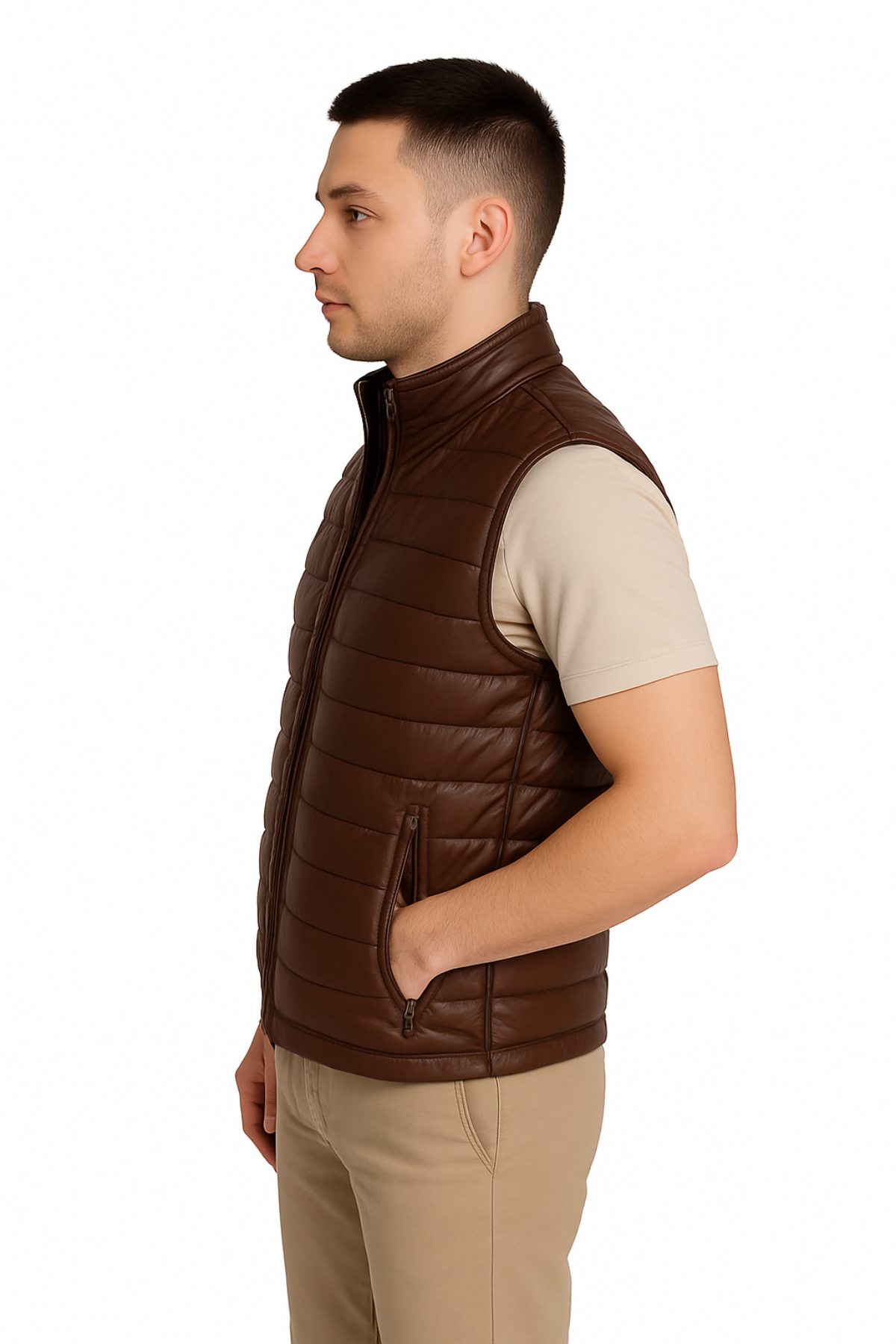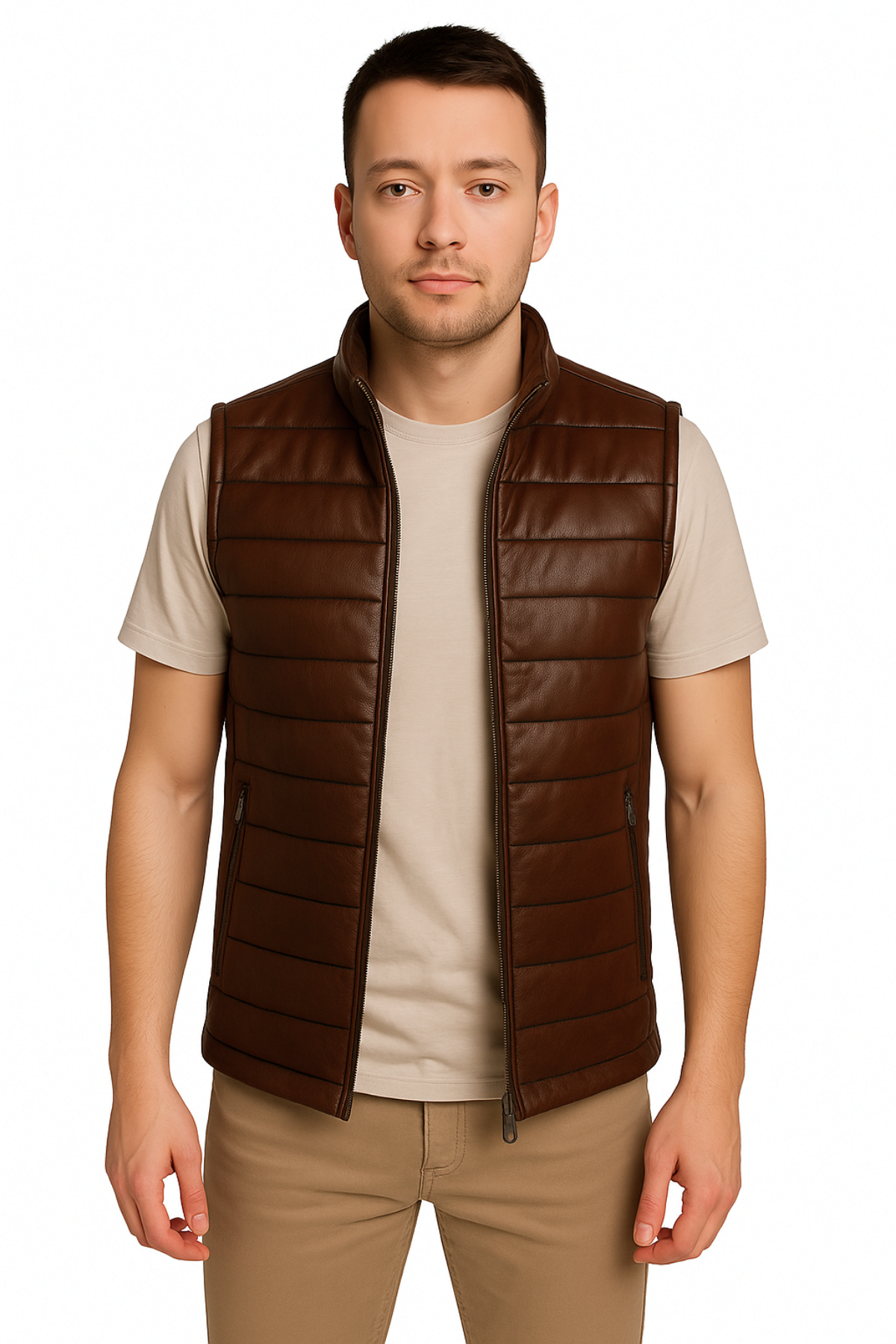 %100 Hakiki Kuzu Derisi Erkek Kahverengi Şişme Yelek - Modern Stil ve Klasik Şıklığın Mükemmel Uyumu