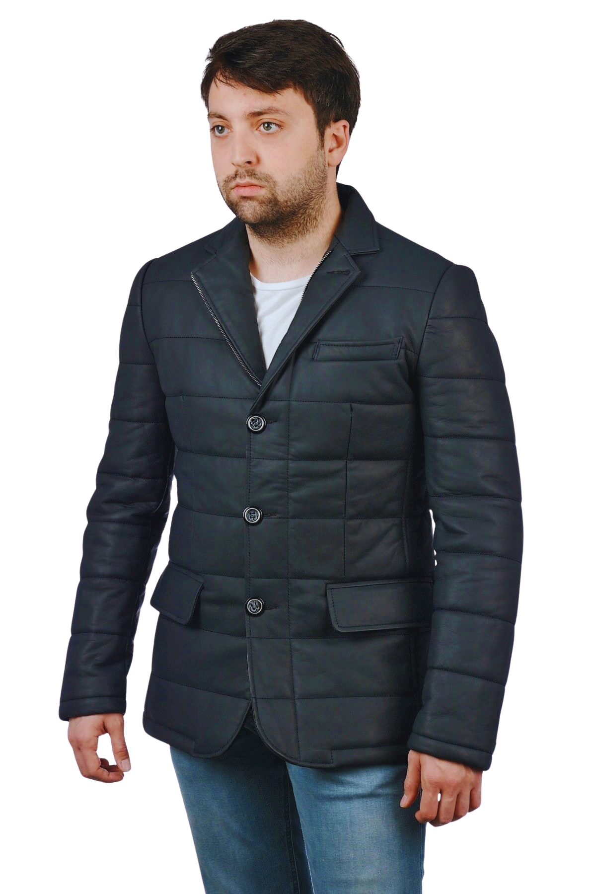Derije Silva Hakiki Deri Tafta Erkek Lacivert Şişme Blazer Ceket