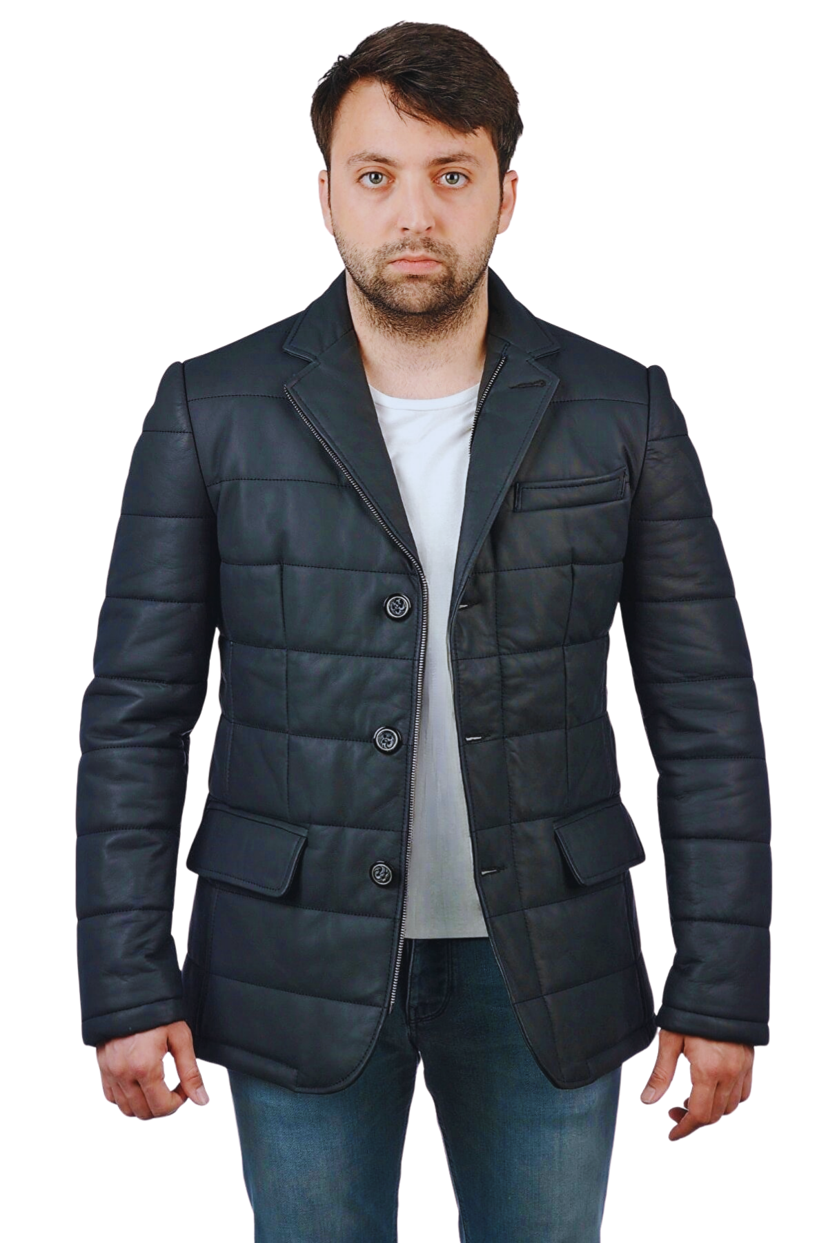 Tarzınızı hem sofistike hem dinamik kılacak bu lacivert şişme blazer deri ceket, şehirli erkeğin gardırobunun vazgeçilmez parçası olmaya aday. Özgün tasarımı ve yüksek kaliteli işçiliğiyle öne çıkan bu model, klasik blazer ceket çizgilerini modern şişme dikiş detaylarıyla birleştiriyor.