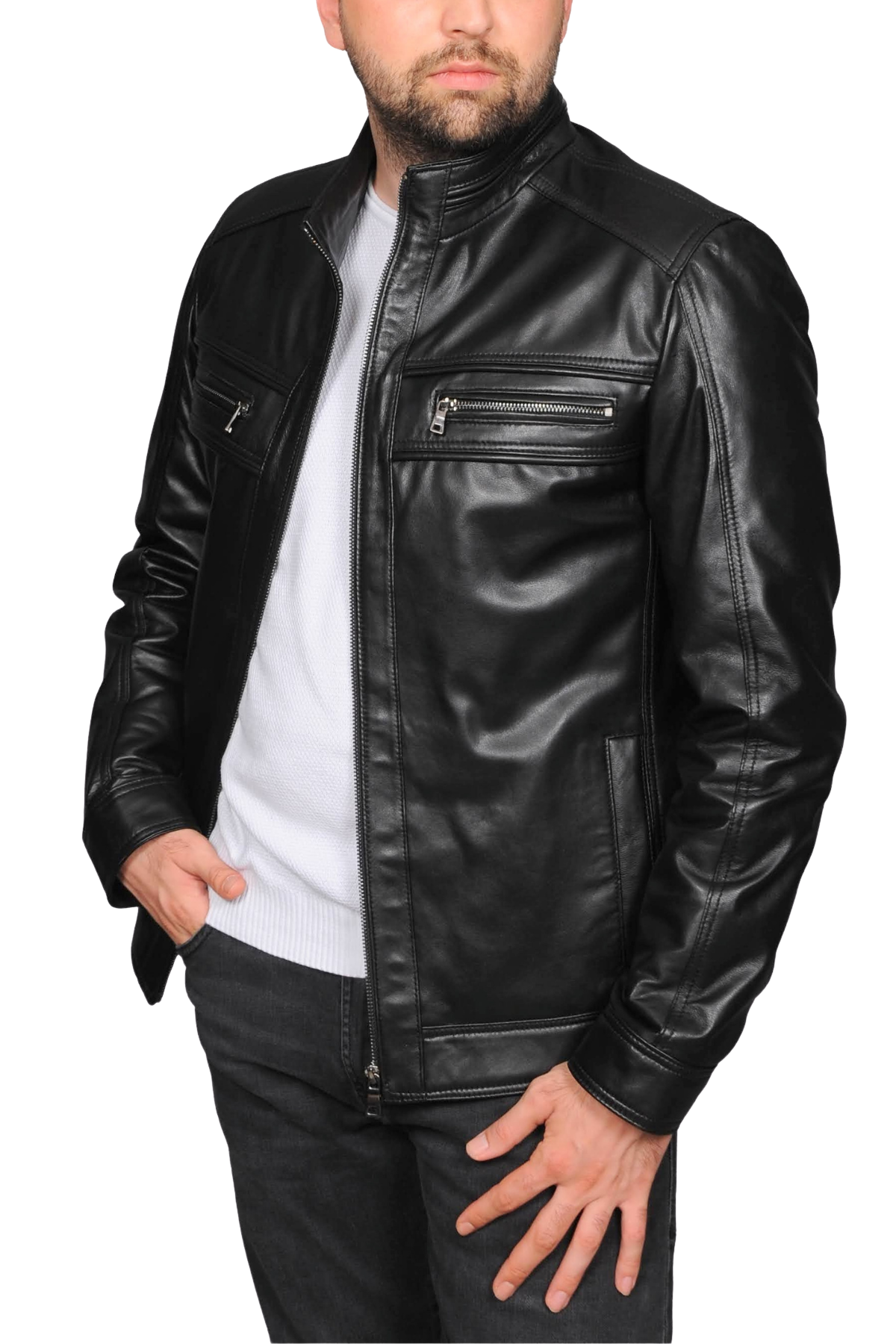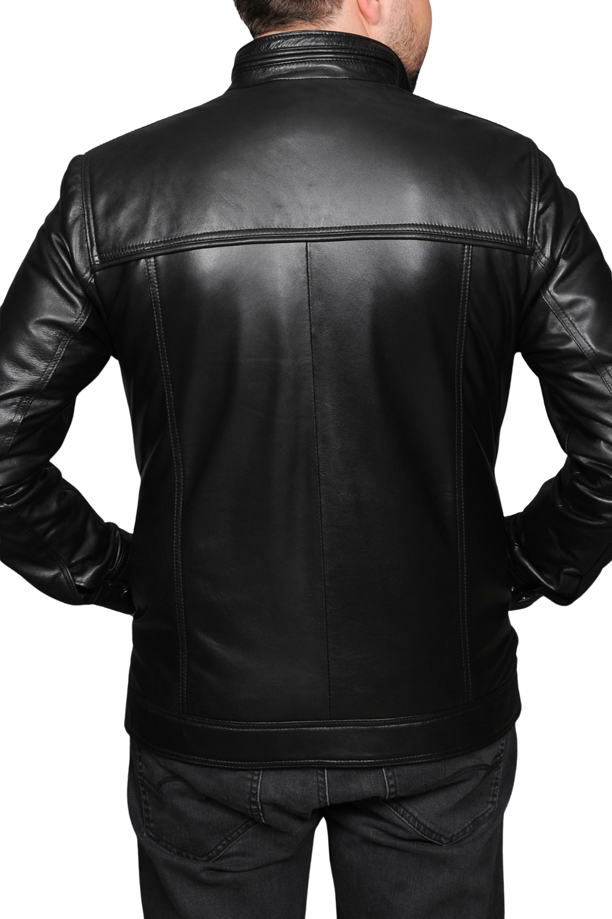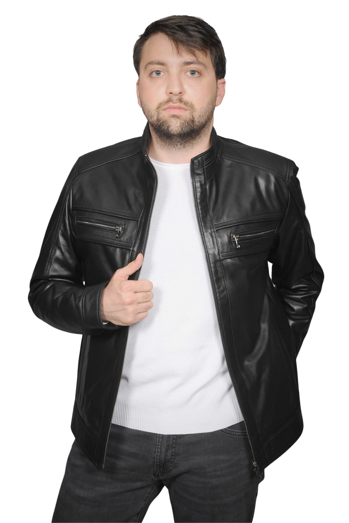 Derije Hakiki Deri Erkek Siyah Dik Yaka Ceket – Regular Kalıp